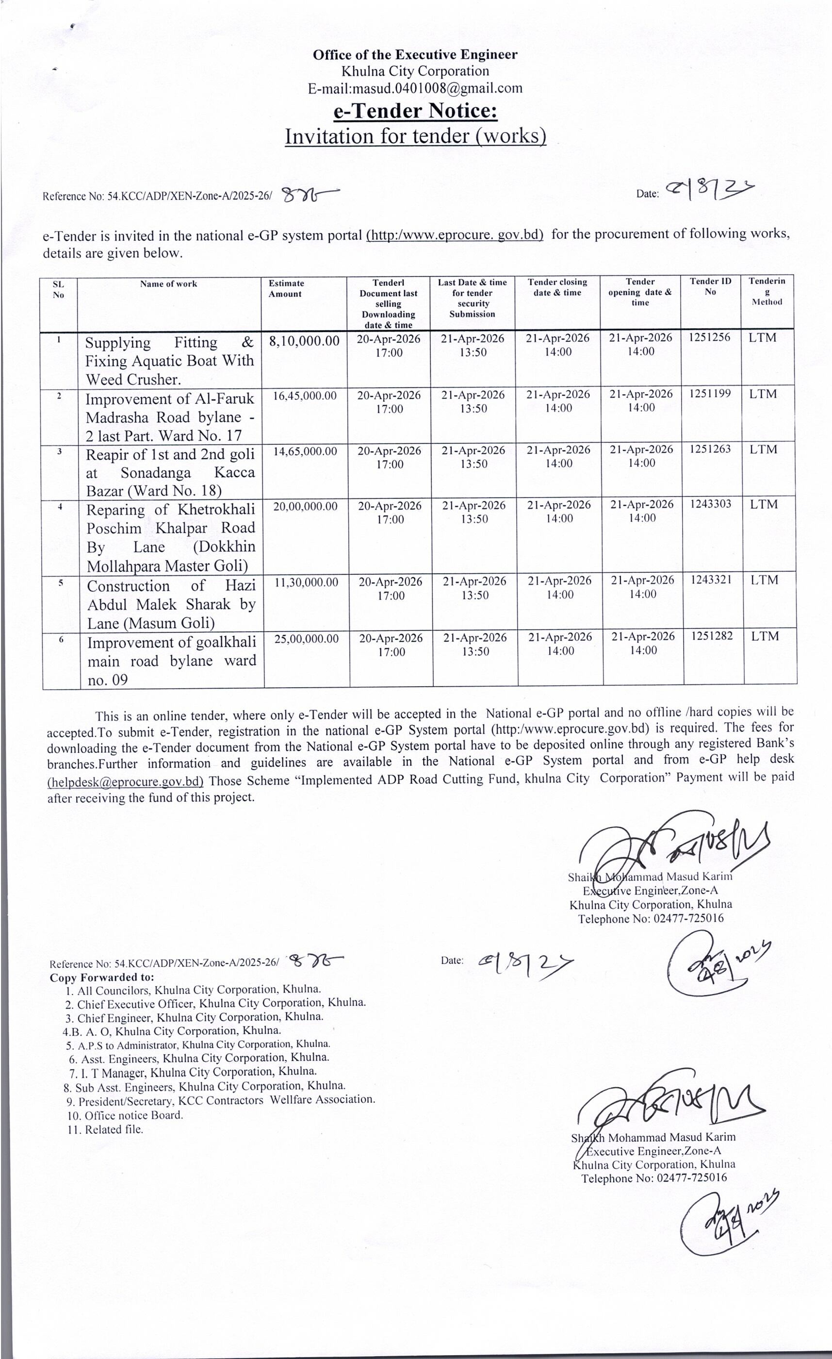 | ১ | 6 LTM Tender XEN-Zone A | ০৫-০৪-২০২৬ | দেখুন | |||